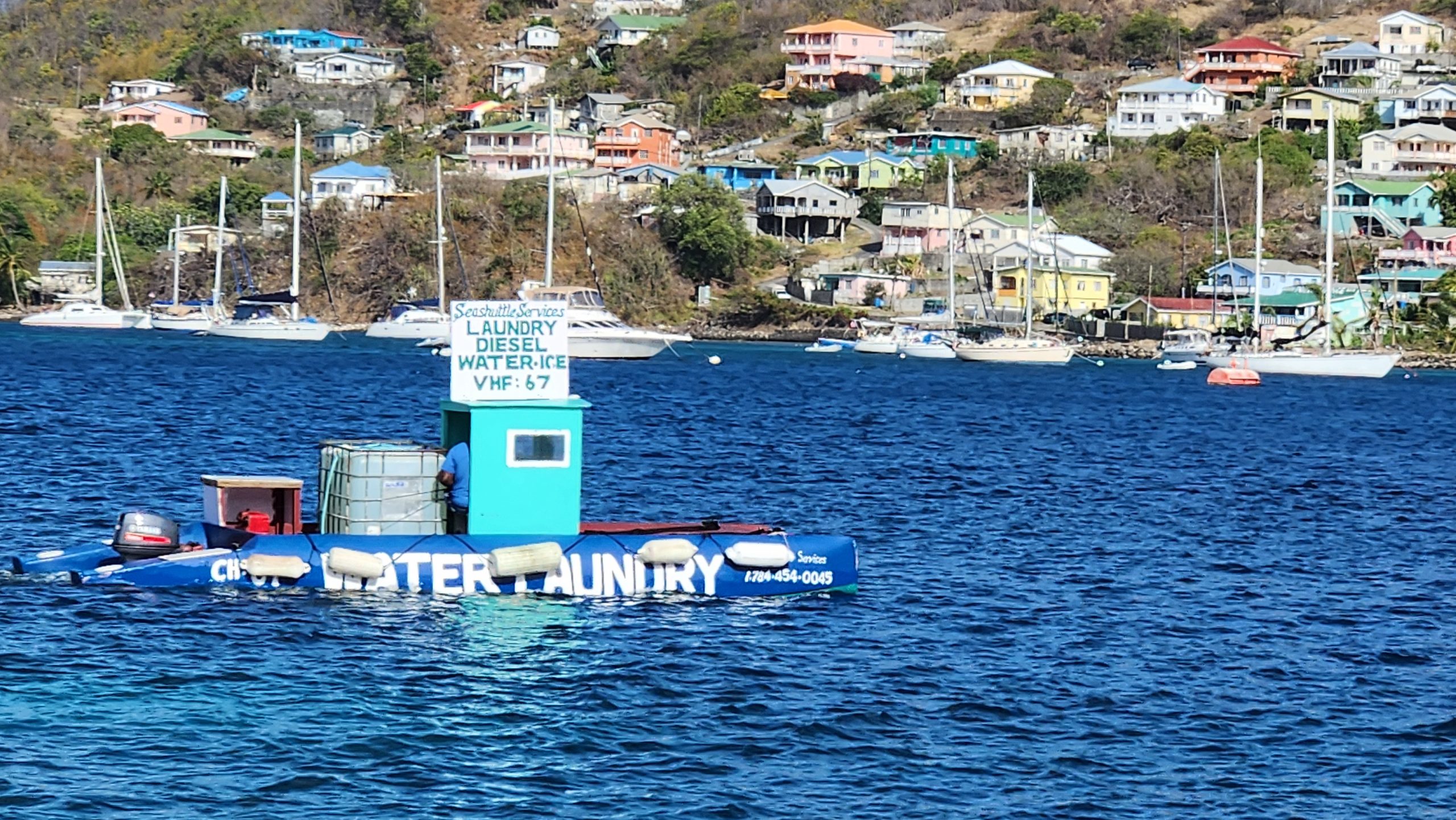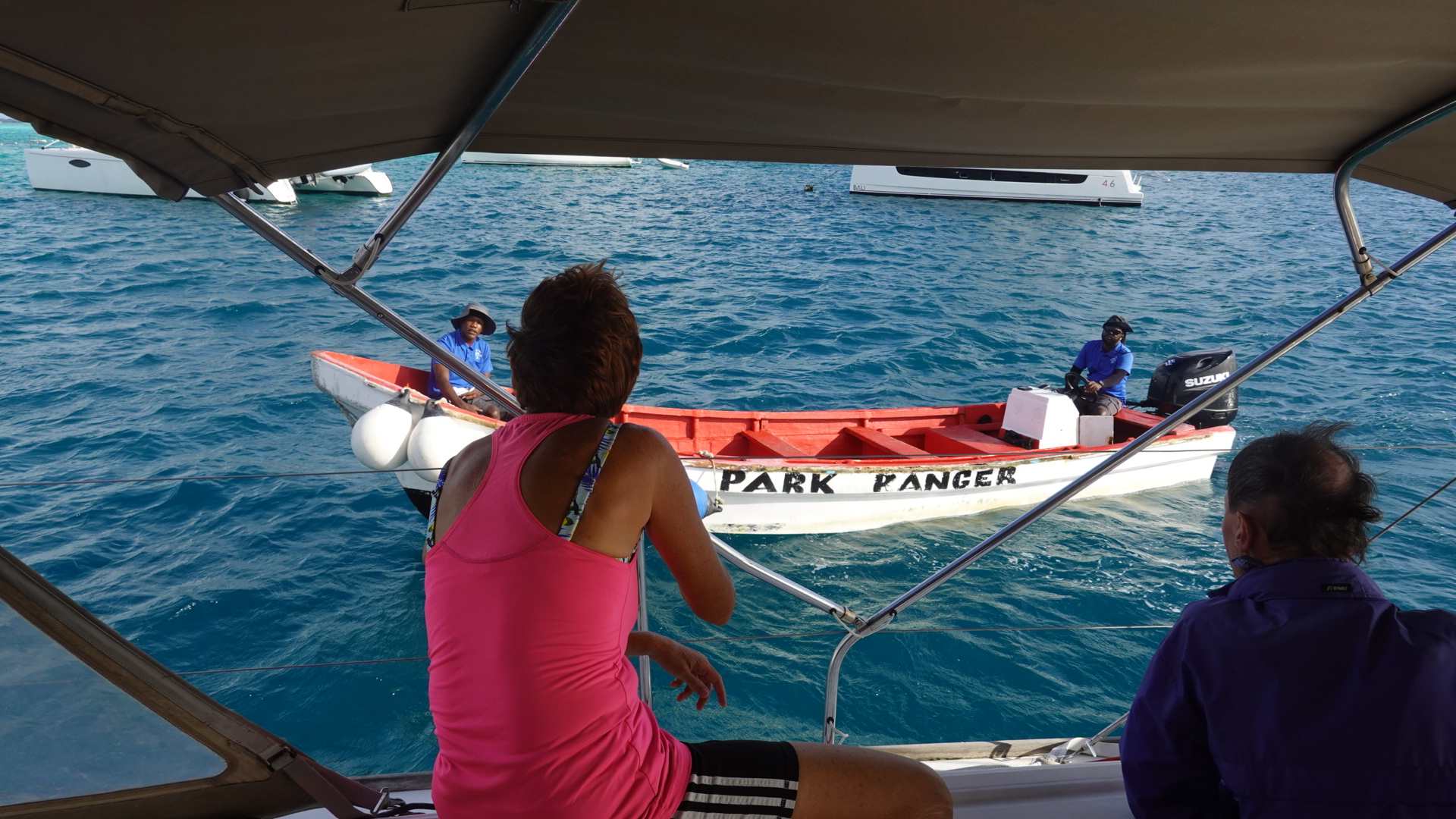 | In a number of bays there were service boats, for gasoline, water, laundry and supplies. | Twice we had park ranger coming to collect the park fees. | … and we saw some nice ships. |